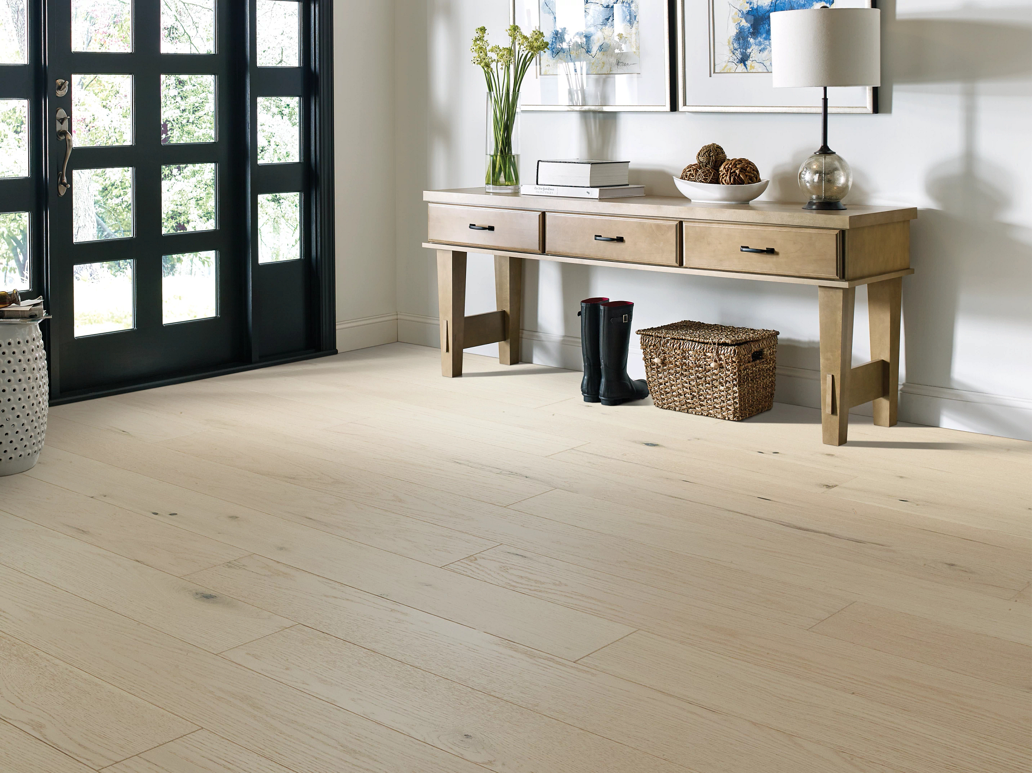 Style Name: ENSEMBLEStyle Number: SW768Color Name: CHAMPAGNEColor Number: 01045Flooring Type: HardwoodCollection: The GallerySpecies: WHITE OAKConstruction: EngineeredPlank Width: 7.5"Plank Length: 15.75" - 74.8"Plank Thickness: 1/2Veneer Thickness: 2 mmSq. Ft. Per Carton: 31.08Edge Profile: MICRO BEVELFinish: UV Aluminum OxideSurface Texture: WIREBRUSHEDInstallation Method: NAIL, STAPLE, GLUE, FLOATINGInstallation Grade: ABOVE, ON, BELOWRadiant Heat: YesColor Variation: HighGloss Level: 7%Country Of Origin: Indonesia
